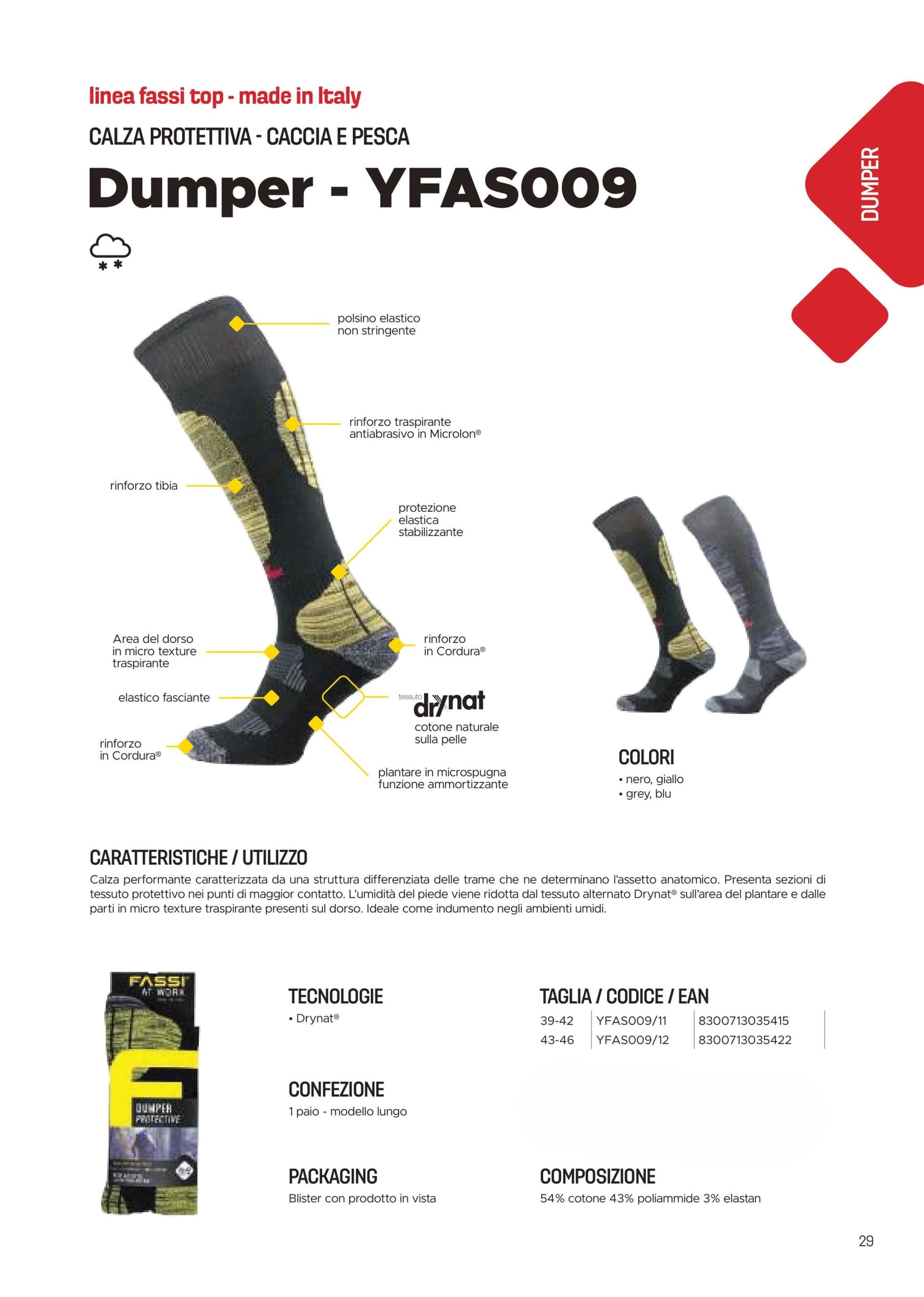 Calza performante caratterizzata da una struttura differenziata delle trame che ne determinano l’assetto anatomico. Presenta sezioni di tessuto protettivo nei punti di maggior contatto. L’umidità del piede viene ridotta dal tessuto alternato Drynat® sull’area del plantare e dalle parti in micro texture traspirante presenti sul dorso. Ideale come indumento negli ambienti umidi.