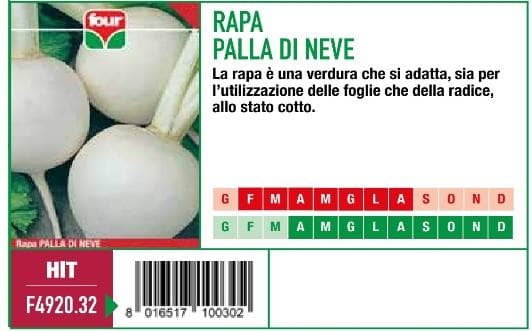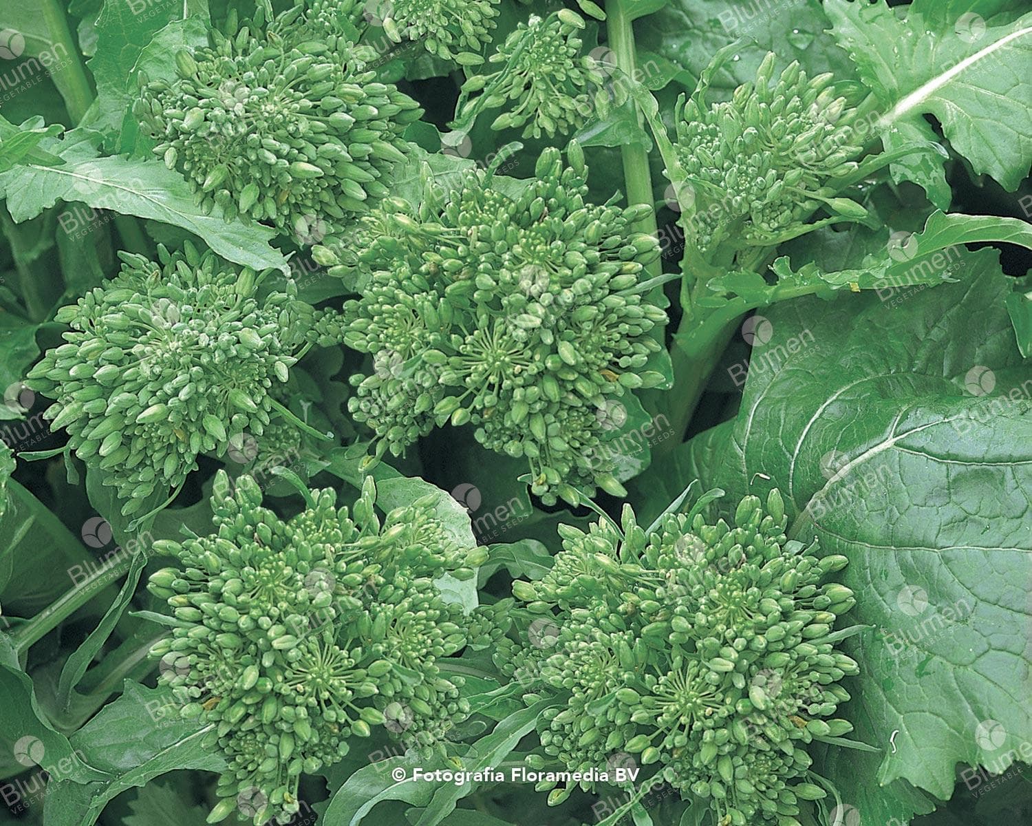 Broccoletto a infiorescenza piccola, con foglie verdi, lunghe e dentellate. Si semina in luglio per raccolta in settembre (la raccolta avrà inizio dopo circa 40 gg dalla semina)